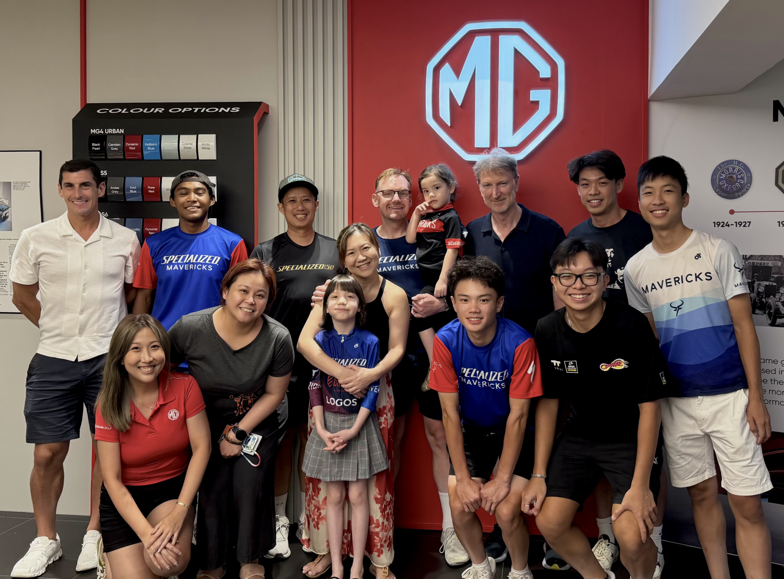 Specialized Mavericks team alongside Elizabeth Chua (Eurokars EV, MG Singapore), Gem Ng (Eurokars Group) and Wilfred Diepeveen’s family members at MG Singapore Showroom (11 Leng Kee Road)